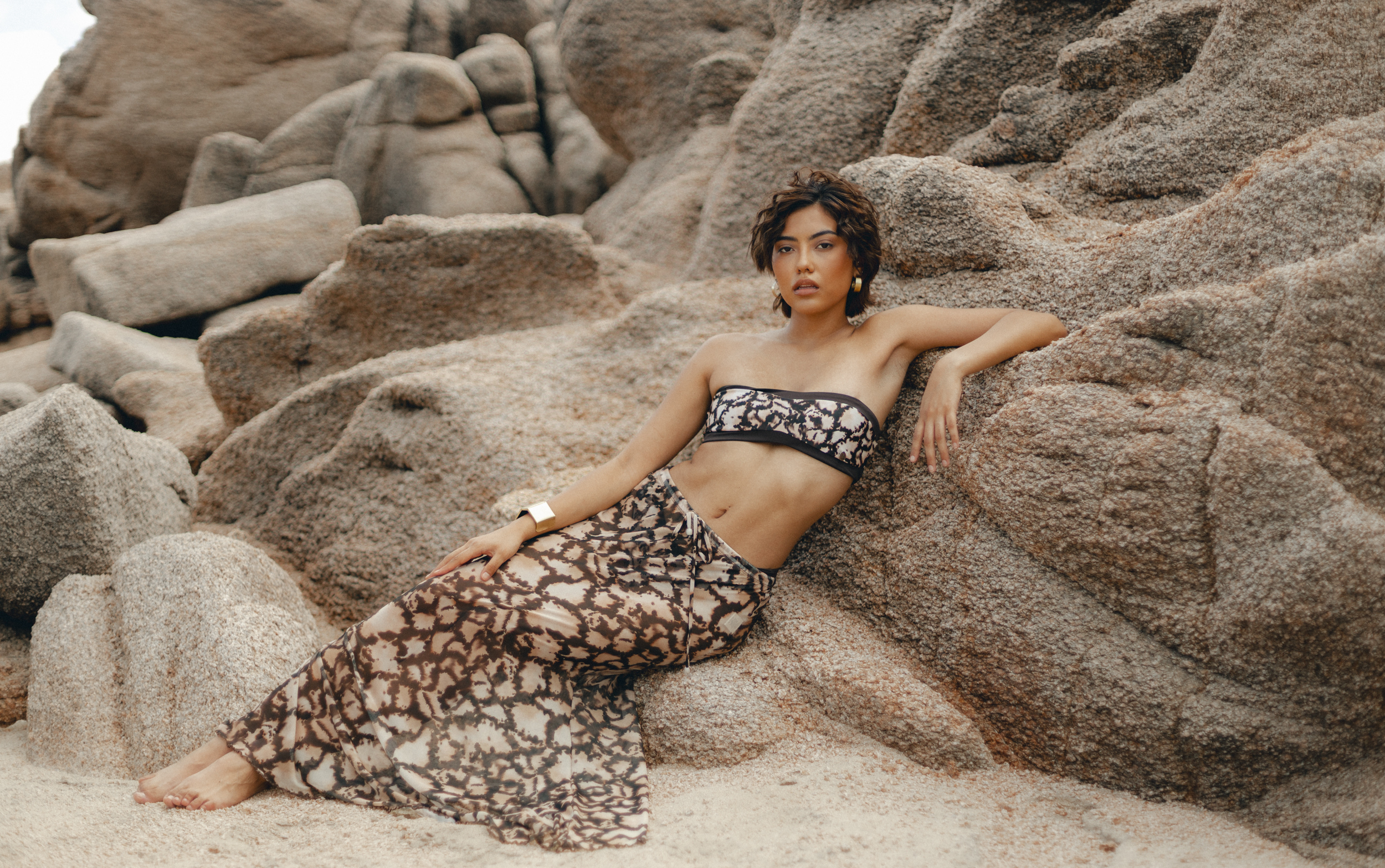 El punto de partida está en Baja California Sur, donde el desierto y el océano se cruzan y el tiempo esculpe huellas en la tierra. La colección refleja cómo el agua, la arena, el viento y el fuego dejan rastros de transformación, memoria y belleza imperfecta.