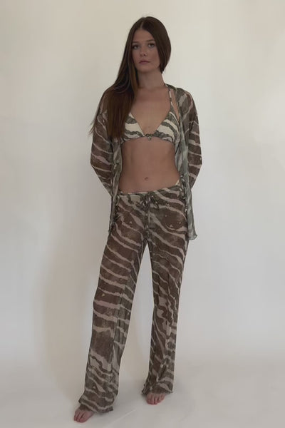 Ligero y cómodo, este pantalón de mesh combina un corte de tiro alto con una delicada jareta, creando un look casual y fresco ideal para cualquier ocasión de día. Su tejido elástico garantiza libertad de movimiento y comodidad durante todo el día.